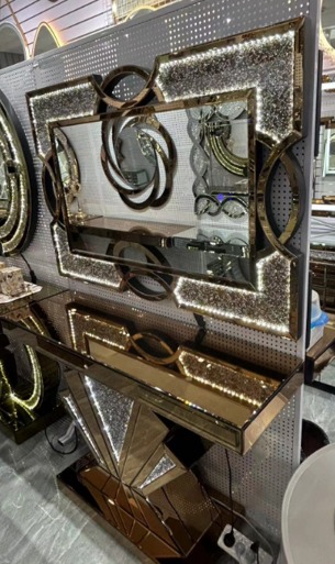 Warna : Gold Table : 120 x 36 x 80 Mirror : Persegi Panjang, 120 x 80 Vol : 0.66 m3